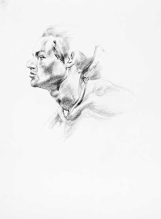 I gave the rest of the evening over to some close-focus studies. Above are two 15-minute studies, and below are two 20-minute ones. All of these are done with hard compressed charcoal on 18 x 24" sheets of cartridge paper.