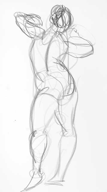 On the Thursday night, K- was working over at the TSA. These are 1-minute studies, done with a black Progresso woodless pencil crayon, on 18 x 24" sheets of bond paper.