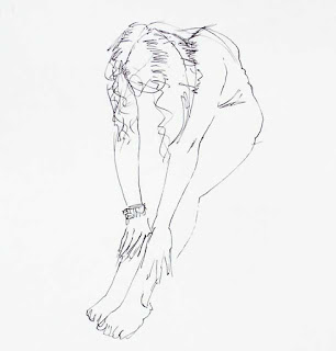 On the Thursday I was at a Collective drawing session, and Bella was the volunteer model for that evening. these are a 1-minute study, a couple of 2-minute ones, and a couple of 5-minute ones below, all Pitt pen on 18 x 18" sheets of Canson Recycled Sketch paper.
